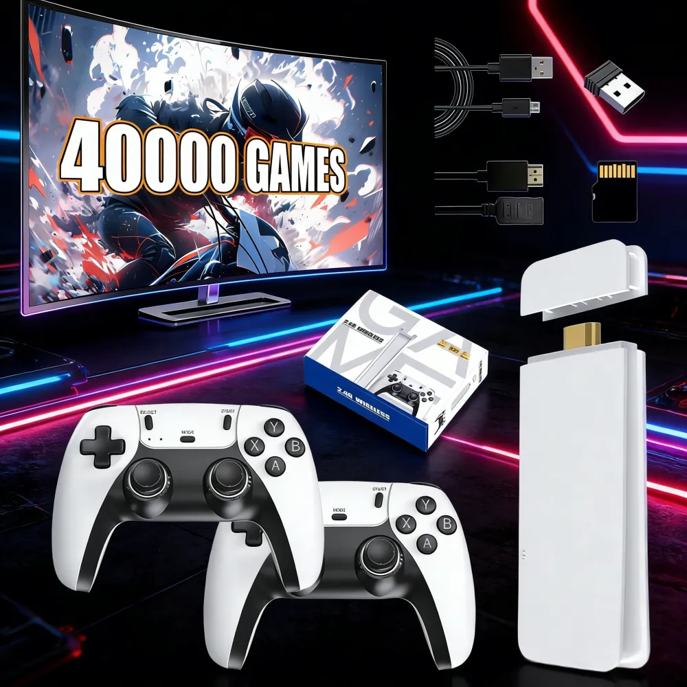 - Our upgraded Game Stick is the definition of easy Plug-and-Play. Simply connect it to your TV’s HDMI port, power it up, and instantly access a massive library of over 40,000+ built-in retro games. With premium wireless controllers, high-definition output, and the ability to save progress, the golden era of gaming is back, better than ever.