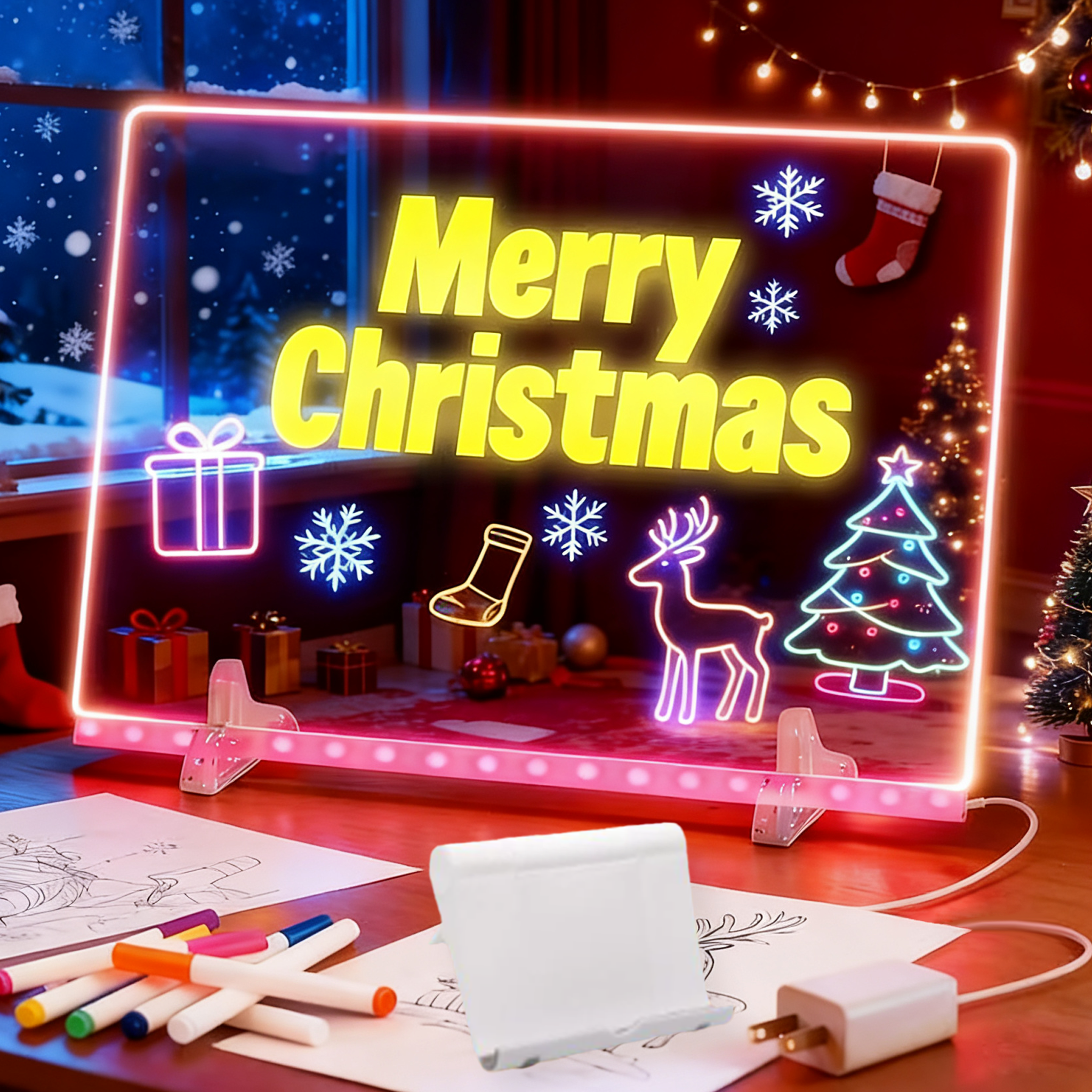 This crystal-clear acrylic board lights up every doodle, message, reminder, and idea—helping kids unplug, focus, and create in a fun, glowing way.