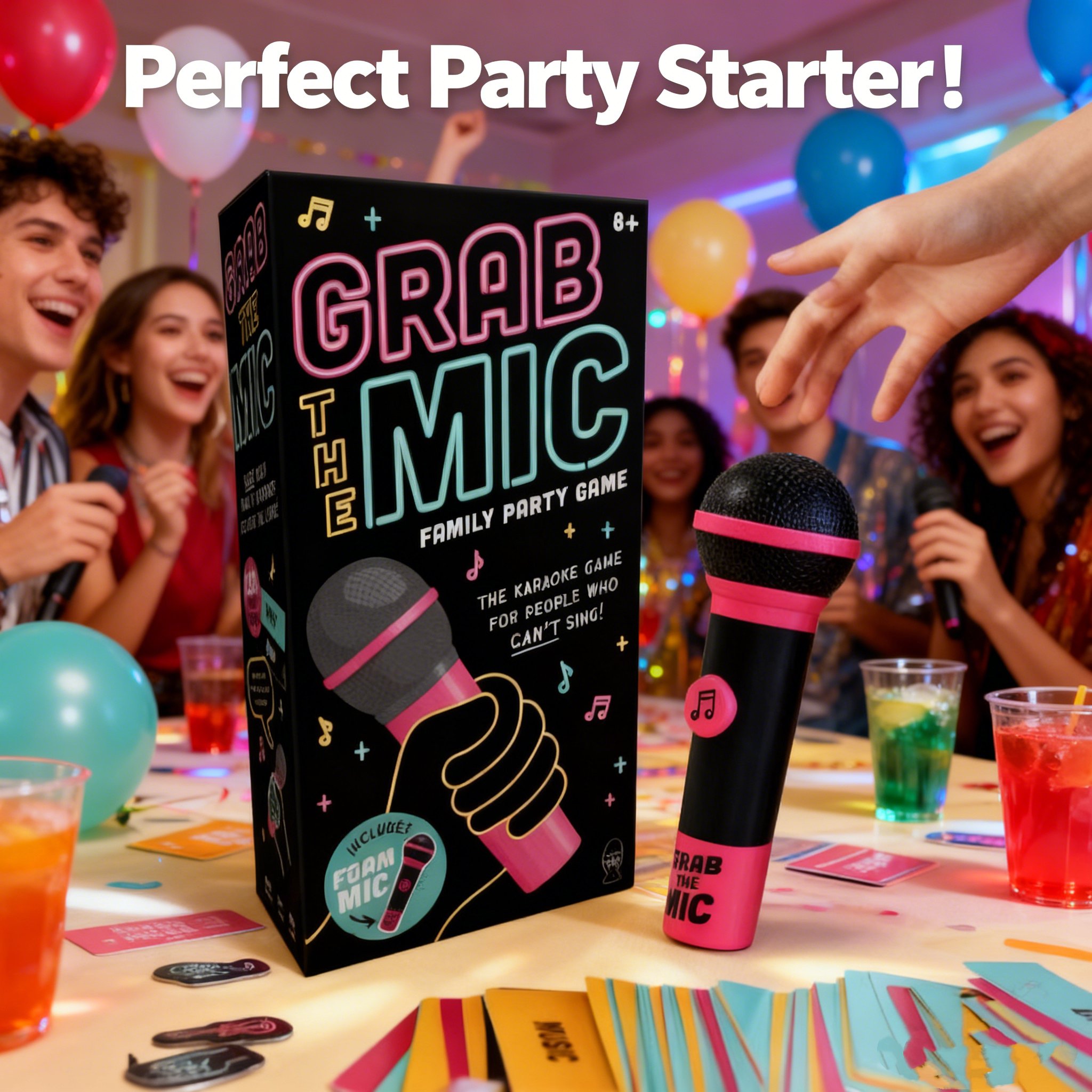 Grab The Mic is designed to make every gathering unforgettable. Whether you’re hosting a family night, party, or holiday event, this game keeps everyone laughing, performing, and connecting. Each part of the game is crafted to create energy, excitement, and lasting memories, no singing skills required!
